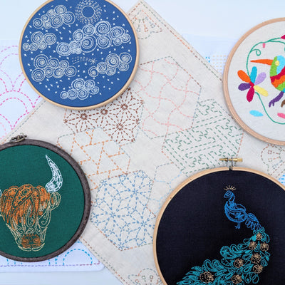 Perfect for beginners and advanced stitchers alike, Sashiko Samplers are pre-printed on cotton fabric to show you exactly where to stitch. Hand wash when you’re done and the ink disappears, leaving only your beautiful embroidery.