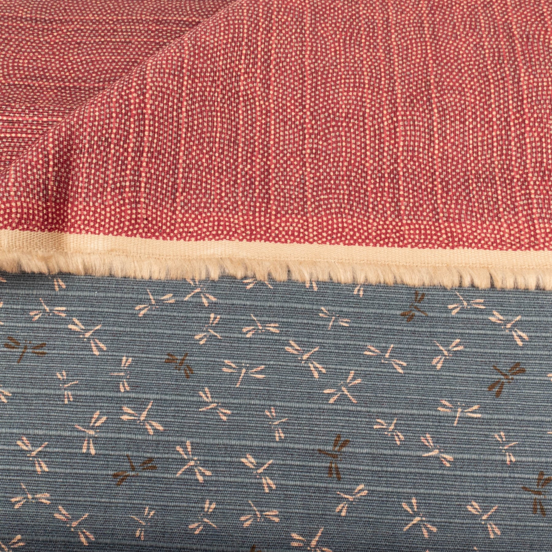 Double-Sided Cotton Dobby Fabric - Blue/Red Dragonflies (SBDS5D24)