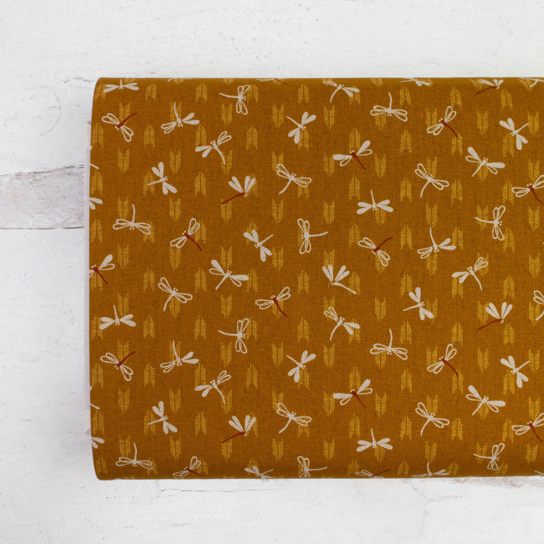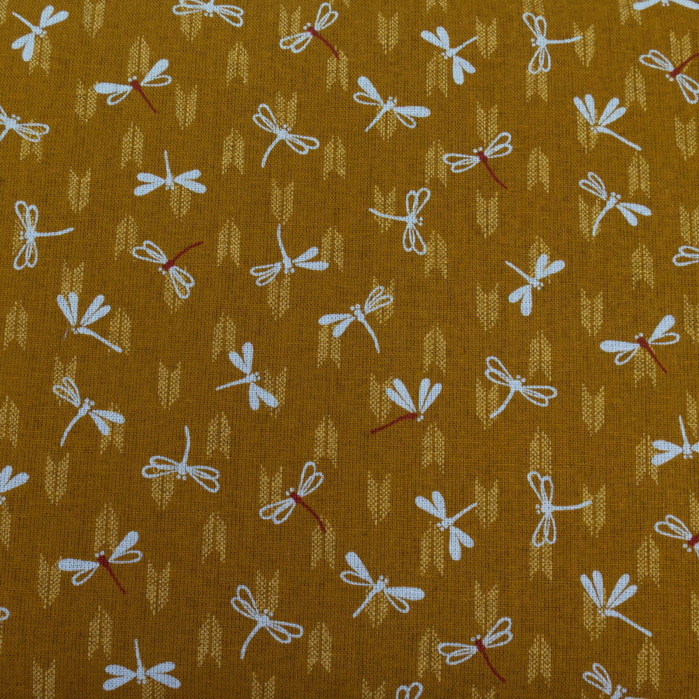 Sevenberry Japanese Cotton Fabric - Dragonflies on Golden Yellow (SBK2732)
