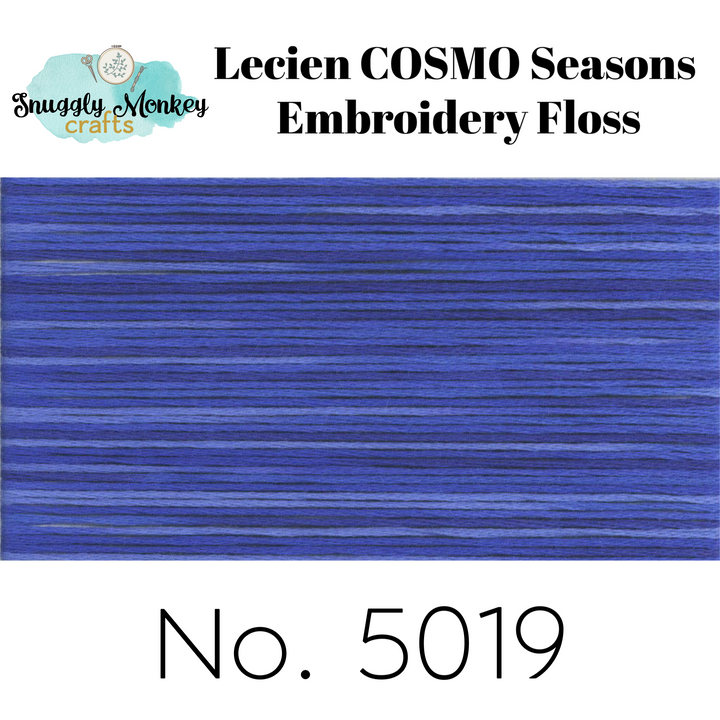 Lecien COSMO Embroidery Floss is a premium cotton 6-strand embroidery thread. Its signature Soft feel and Silky sheen resists tangles and makes it a dream to stitch with. Add texture and interest to your next stitching project with Cosmo Seasons variegated thread. The 5000 Series changes color evenly every 8 cm.