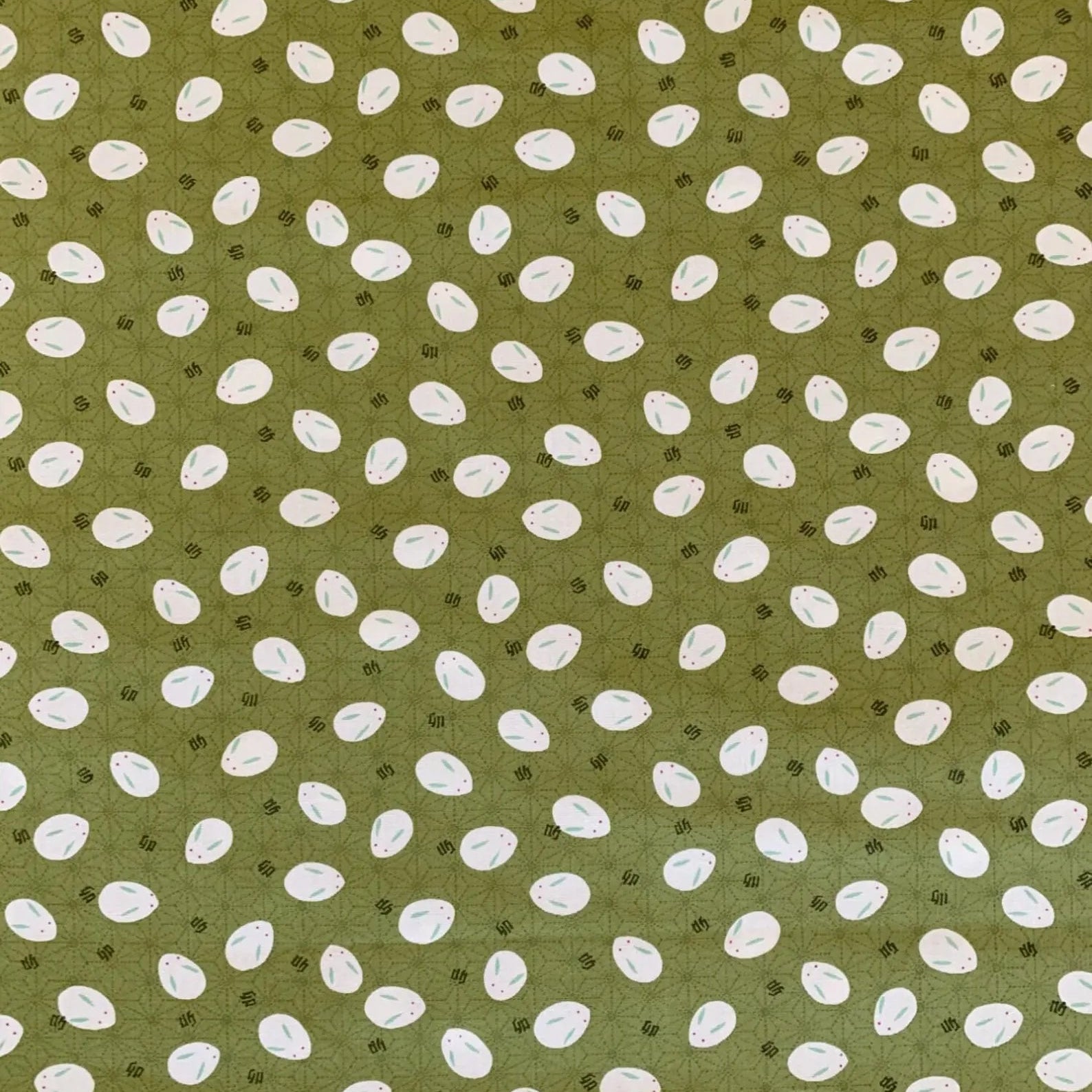 Japanese Cotton Fabric - Slipper Bunnies on Green (Y306031B)