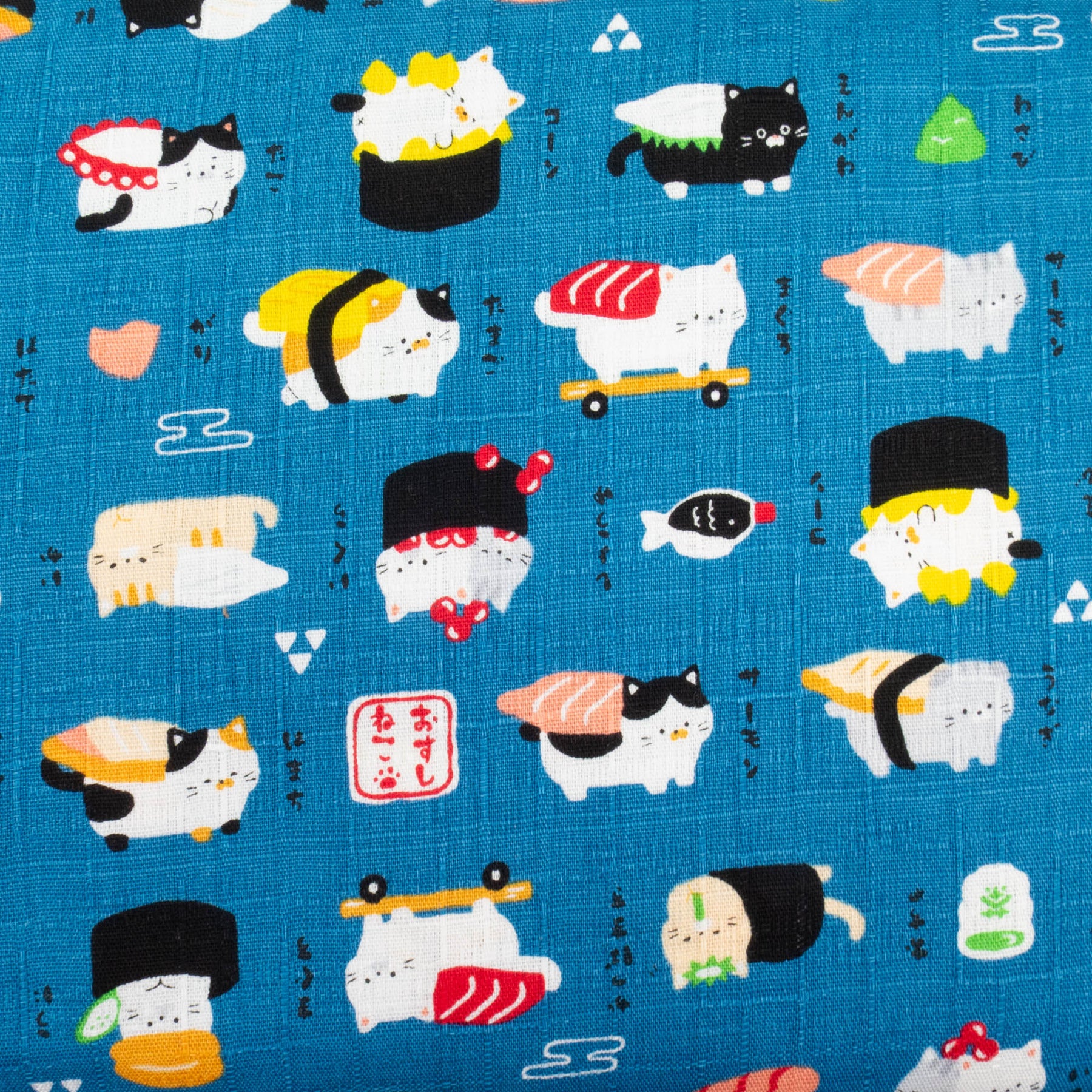 Japanese Cotton Dobby Fabric - Kawaii Cat Sushi on Navy (AP21063E)
