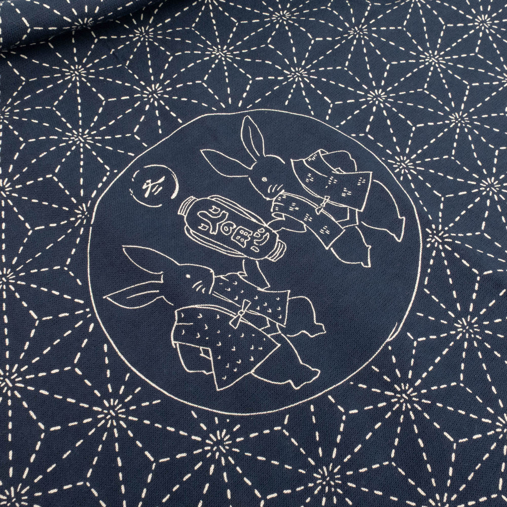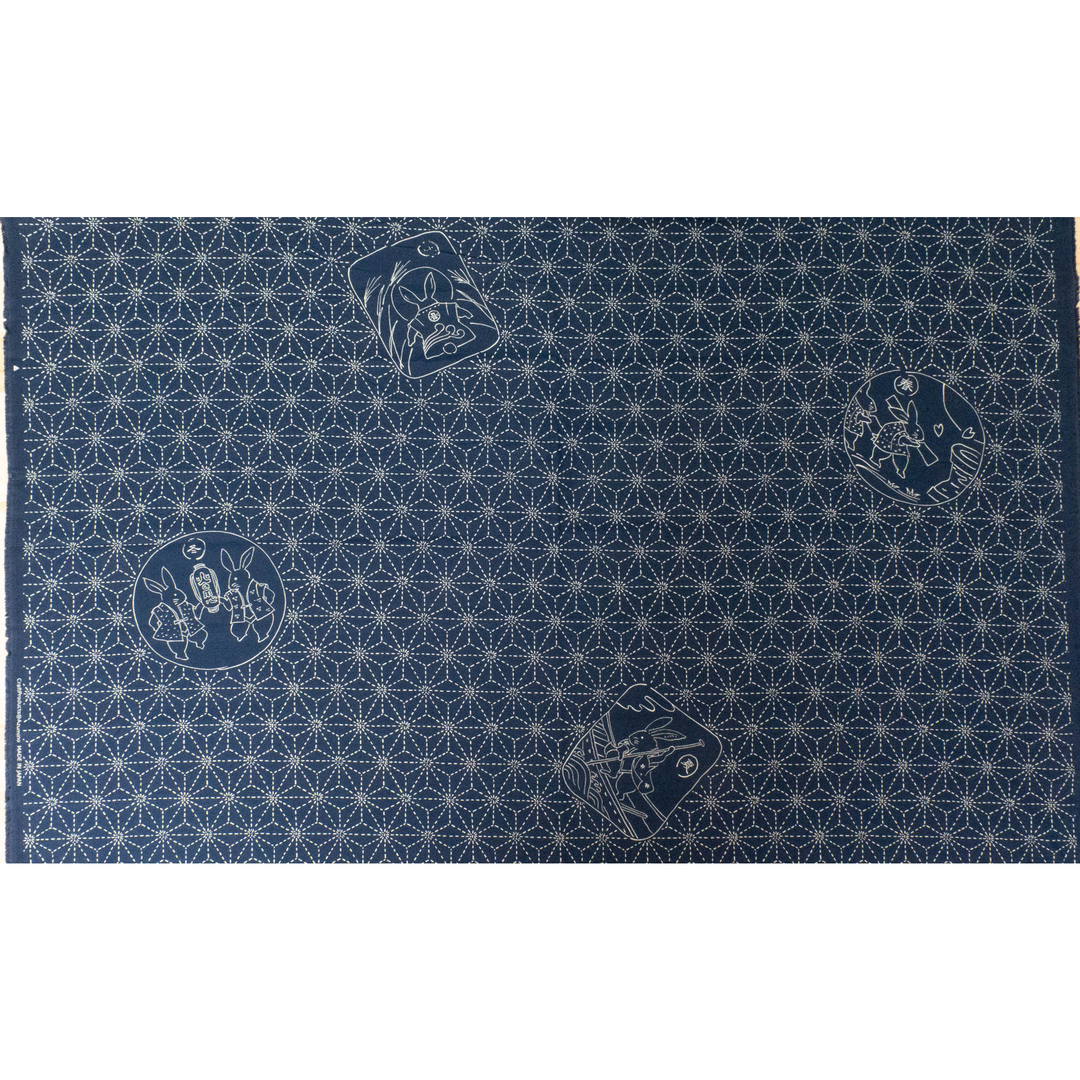 Large Sashiko Panel - Homespun Folktale Rabbits