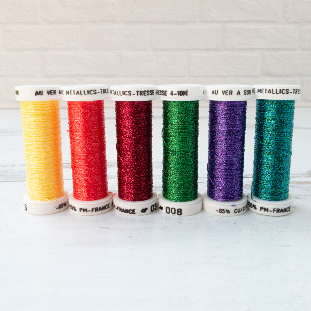 Add some sparkle to your next stitching project with metallic embroidery floss. While metallic thread is notoriously difficult to stitch with, we have searched the world over for the best metallic threads that are a pleasure to work with. Our metallic threads are soft, do not tangle or fray and have a brilliant luster.