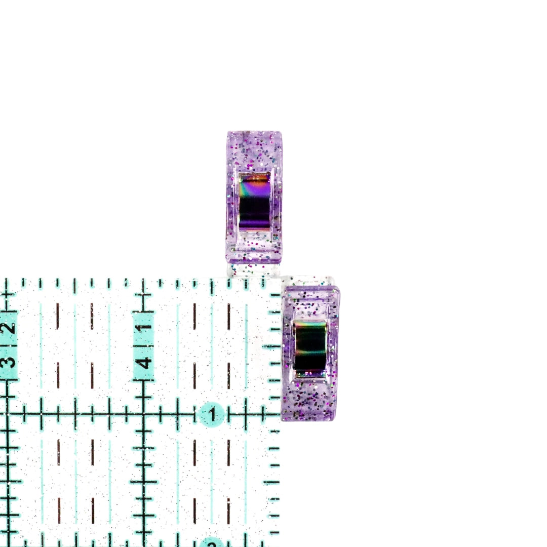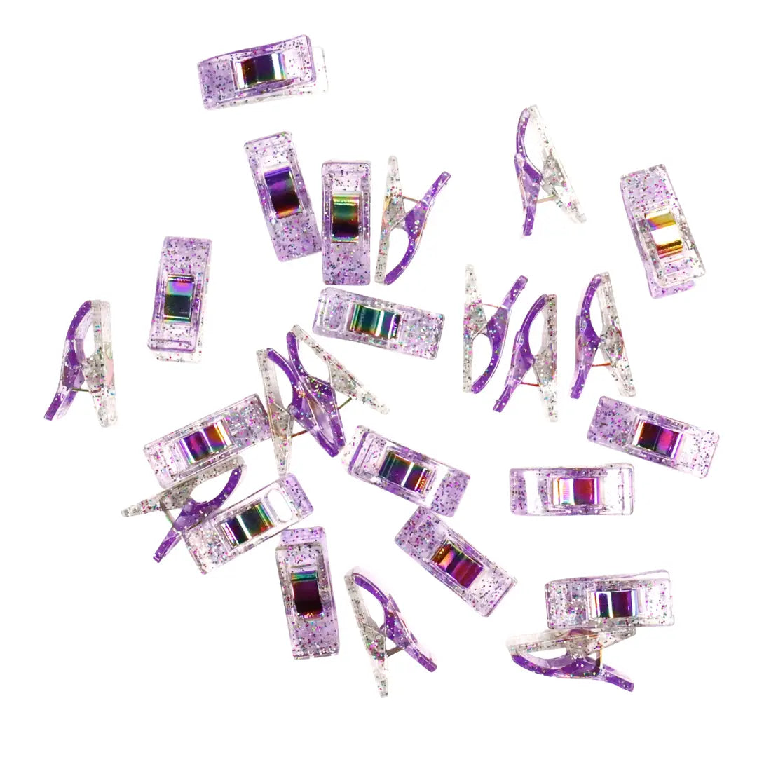 Add some sparkle to your sewing projects with Glitter Sewing Clips! These versatile fabric clips feature a wide jaw opening and flat base designed for precision work without marring delicate materials. Ideal for securing layered fabrics, binding, and heavy-weight materials where traditional pins cause distortion, these clips excel with vinyls, pile fabrics, and serger projects. Their high-visibility design makes them easy to locate if dropped, and they work seamlessly across multiple craft applications from quilting to bag construction.