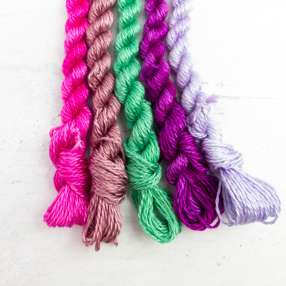 Explore the world of silk embroidery with one of our premium silk thread sets. From exploration packs that allow you to test out different styles of silk thread to our color family packs to help grow your thread collection, our silk thread sets are ideal for any stitcher.