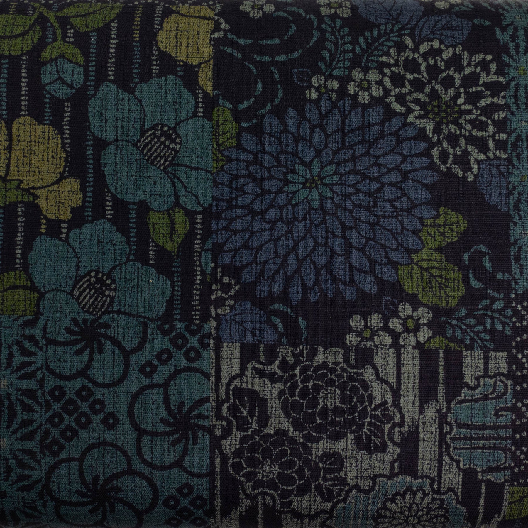 Japanese Cotton Dobby Fabric - Floral Boro Collage on Dk Navy (AP9042A)