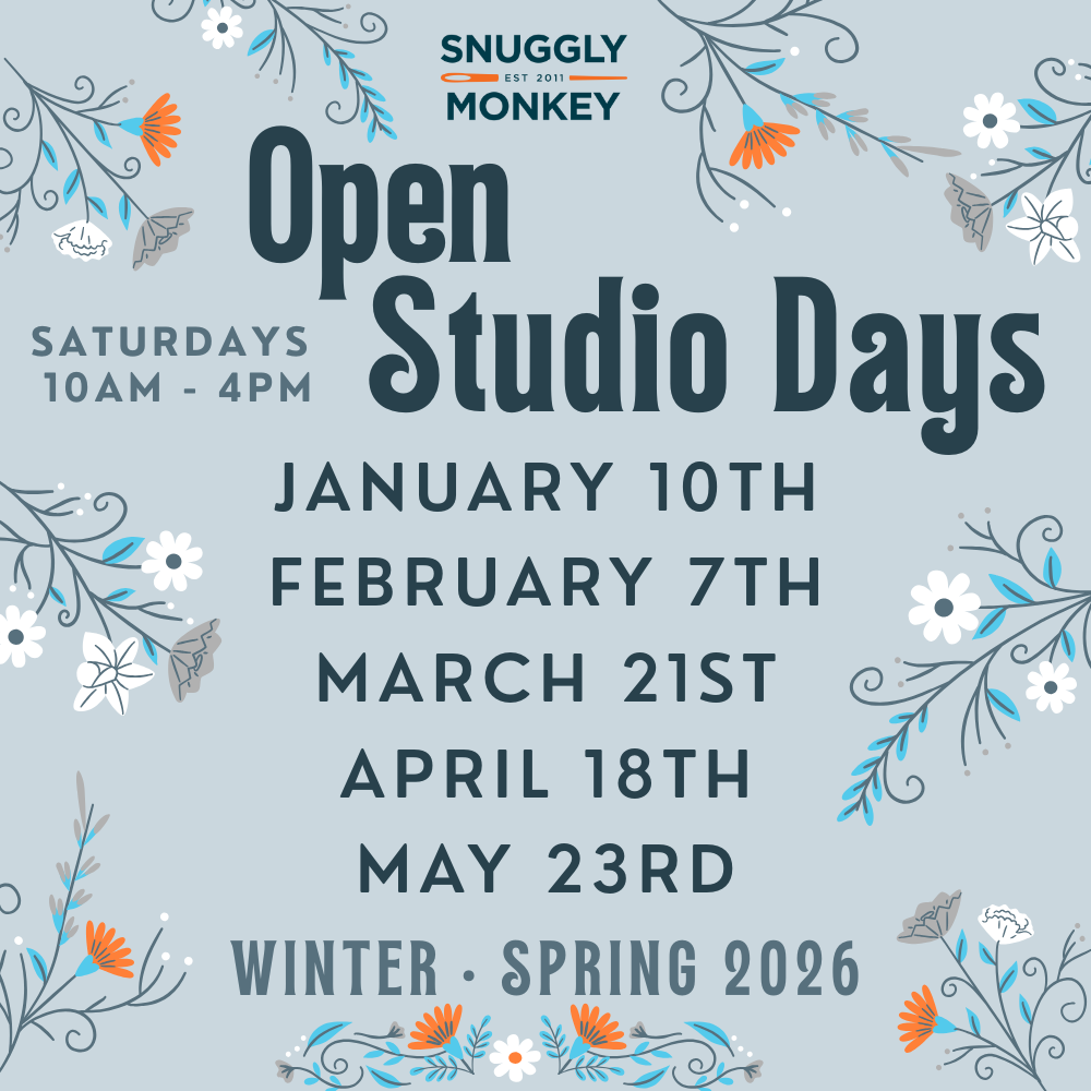 Snuggly Monkey is primarily an online shop, so we do not have regular retail hours. However, we do open our Studio to the public once each month. During our monthly Open Studio Weekends, you are welcome to stop by and shop in-person. Or, you can schedule a private shopping appointment at anytime.